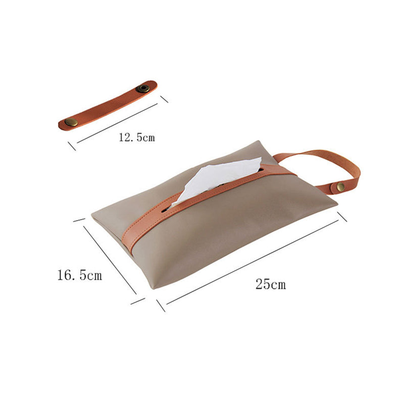 Introducing our elegant hangable tissue boxes, the perfect blend of functionality and style. Crafted with high-quality leather, these tissue boxes add a touch of sophistication to any space. Available in a timeless beige or khaki/brown color, they effortlessly complement various interior styles. Hang them conveniently on walls or hooks for easy access and a clutter-free countertop.