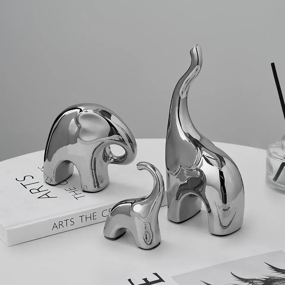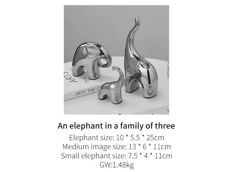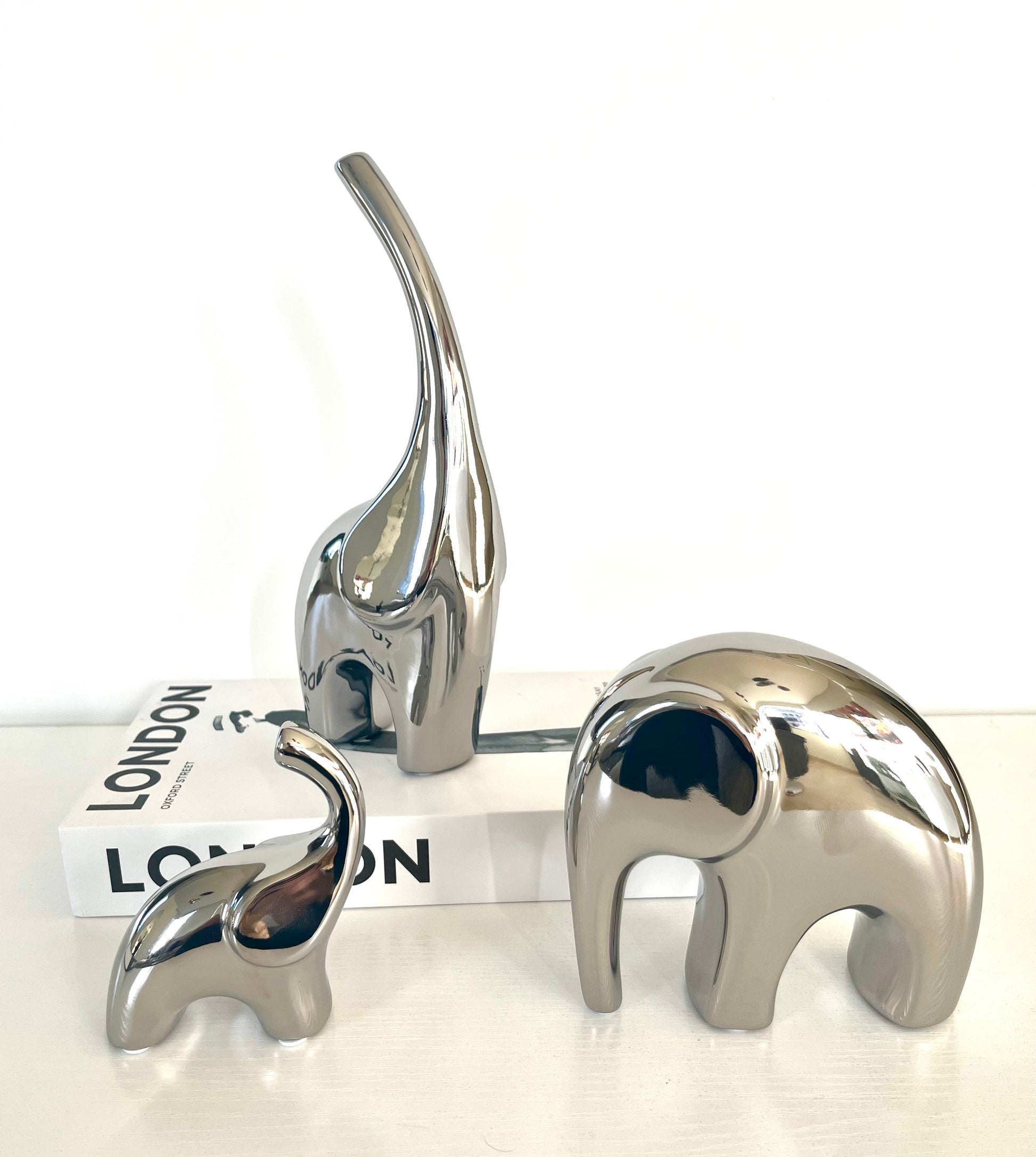 Enhance the ambiance of your home with these elegant elephant figurines, the perfect finishing touch to elevate your decor to new heights. This set of 3 elephants come in three different sizes, allowing you to create a captivating display on your decorative bookshelf, TV unit, or even your bar area. Made from high-quality stainless steel, these figurines exude timeless beauty and add a touch of sophistication to any living space.