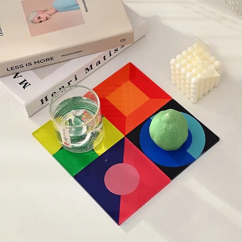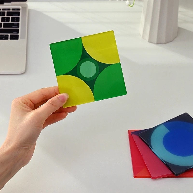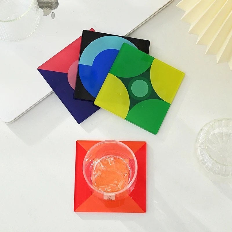 Introducing our sleek and stylish Geometric Harmony Cup Coasters, the ultimate blend of modern design and practicality. These acrylic coasters feature clean and geometric shapes in a variety of vibrant colors, making them a visually striking addition to any gathering or party. Add a touch of modern elegance to your home and impress your guests with these conversation starters at your next gathering.