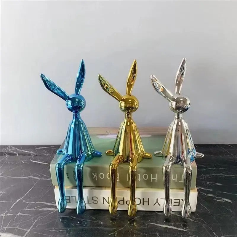 Add a dash of cuteness and elegance to your home with our Sitting Shiny Rabbit Figurines. These cute and charming rabbits come in a range of vibrant colors including glossy blue, silver, gold, and black, adding the finishing touch to any space. Whether placed on a TV unit, bookshelf, or bar, these figurines bring a playful and stylish element to your decor.