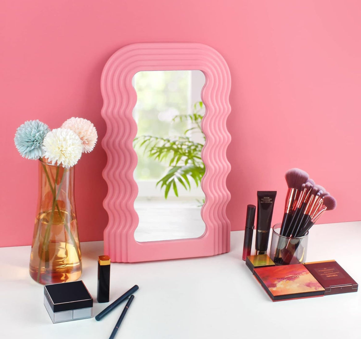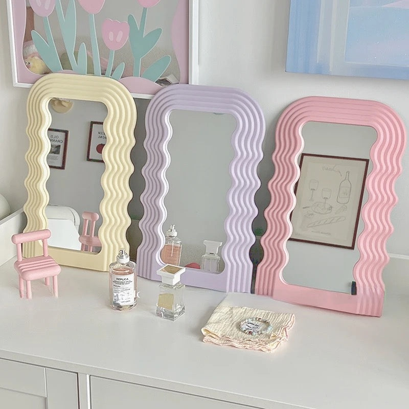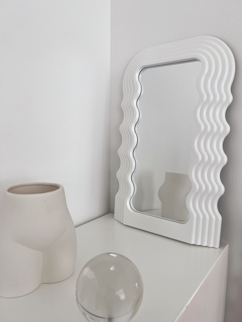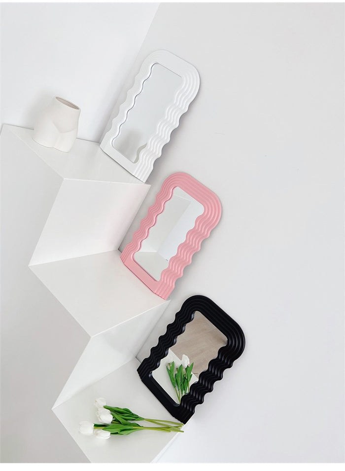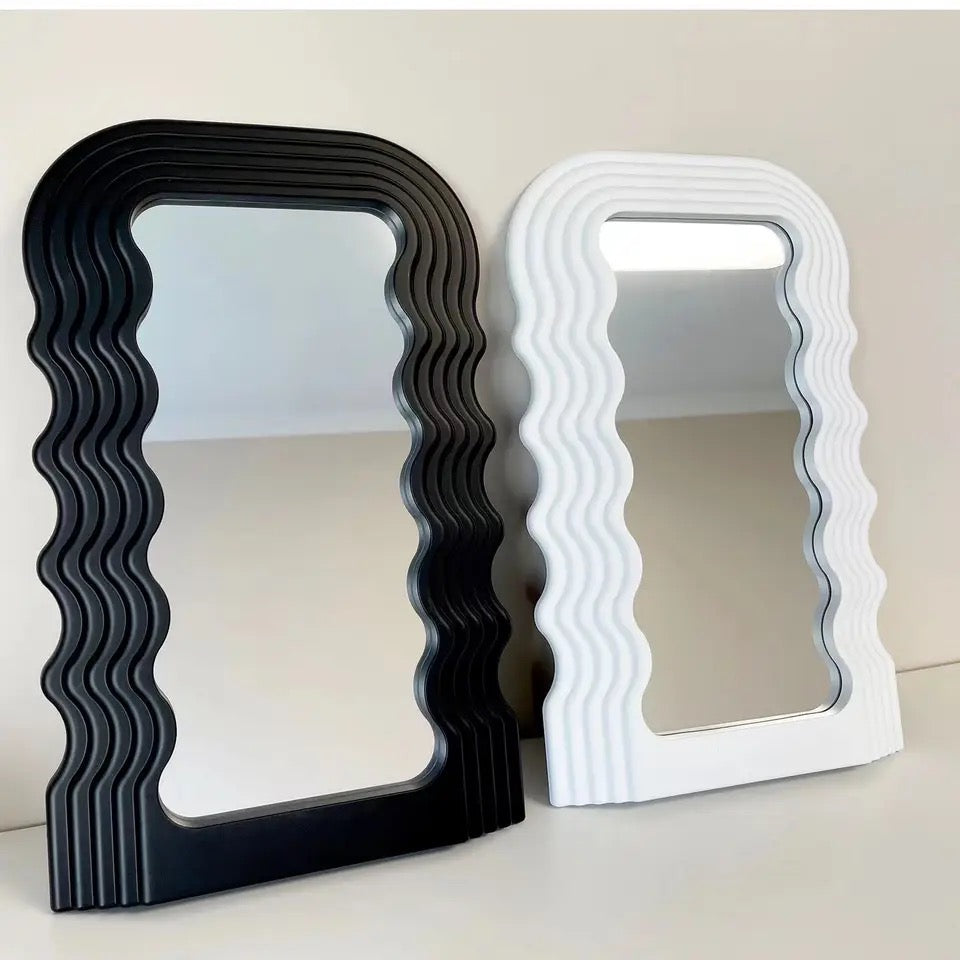 Introducing our Mini Decorative Mirror featuring a stunning wave frame design. Its compact size makes it perfect for decorating small nooks, enhancing your walls with both functionality and visual appeal. Available in 3 colors.