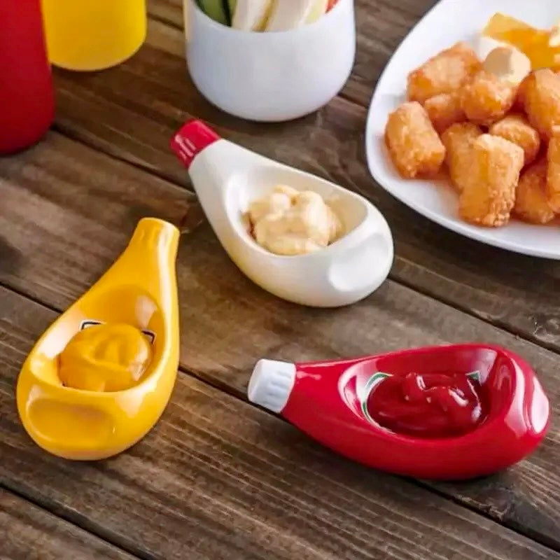 Introducing our delightful set of 3 dipping trays inspired by the iconic HEINZ ketchup, mustard, and mayonnaise bottles! These adorable and hilarious dipping trays are the perfect conversation starter at any gathering or party. Each tray is designed to hold your favorite condiments, sauces, or small snacks, ensuring a mess-free and convenient dipping experience.