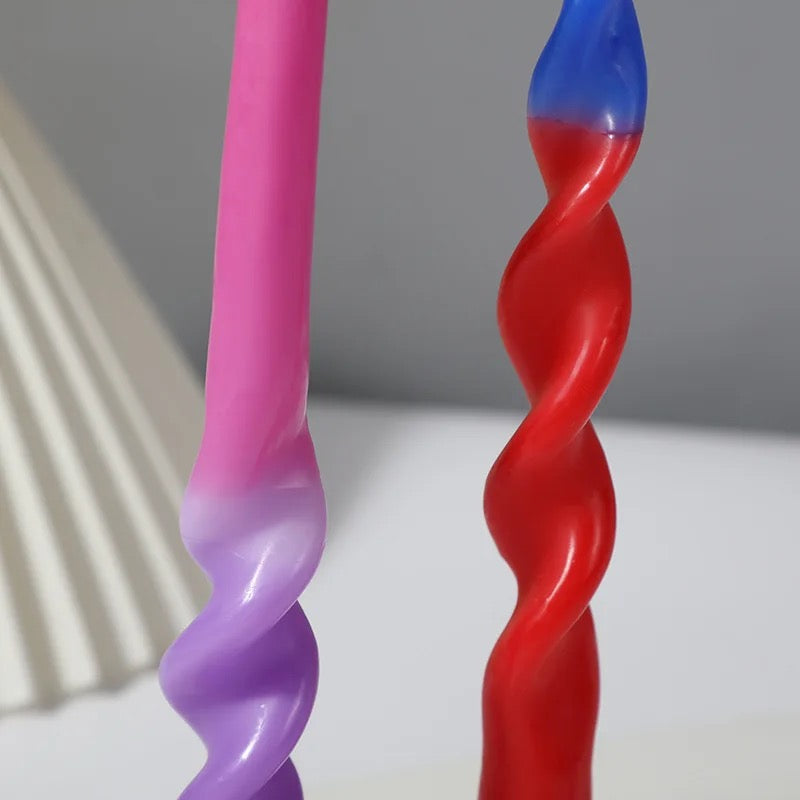 Introducing our Set of 2 Spiral Rainbow Candles—a perfect duo of pillar spiral-shaped candles available in two vibrant colors. Versatile for any occasion or ideal as a thoughtful gift. Illuminate your moments with this captivating and stylish candle set.