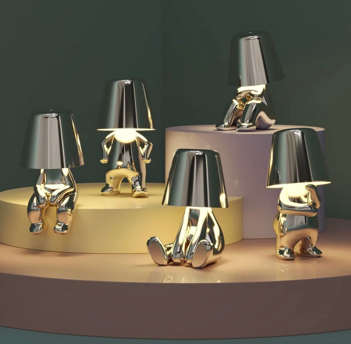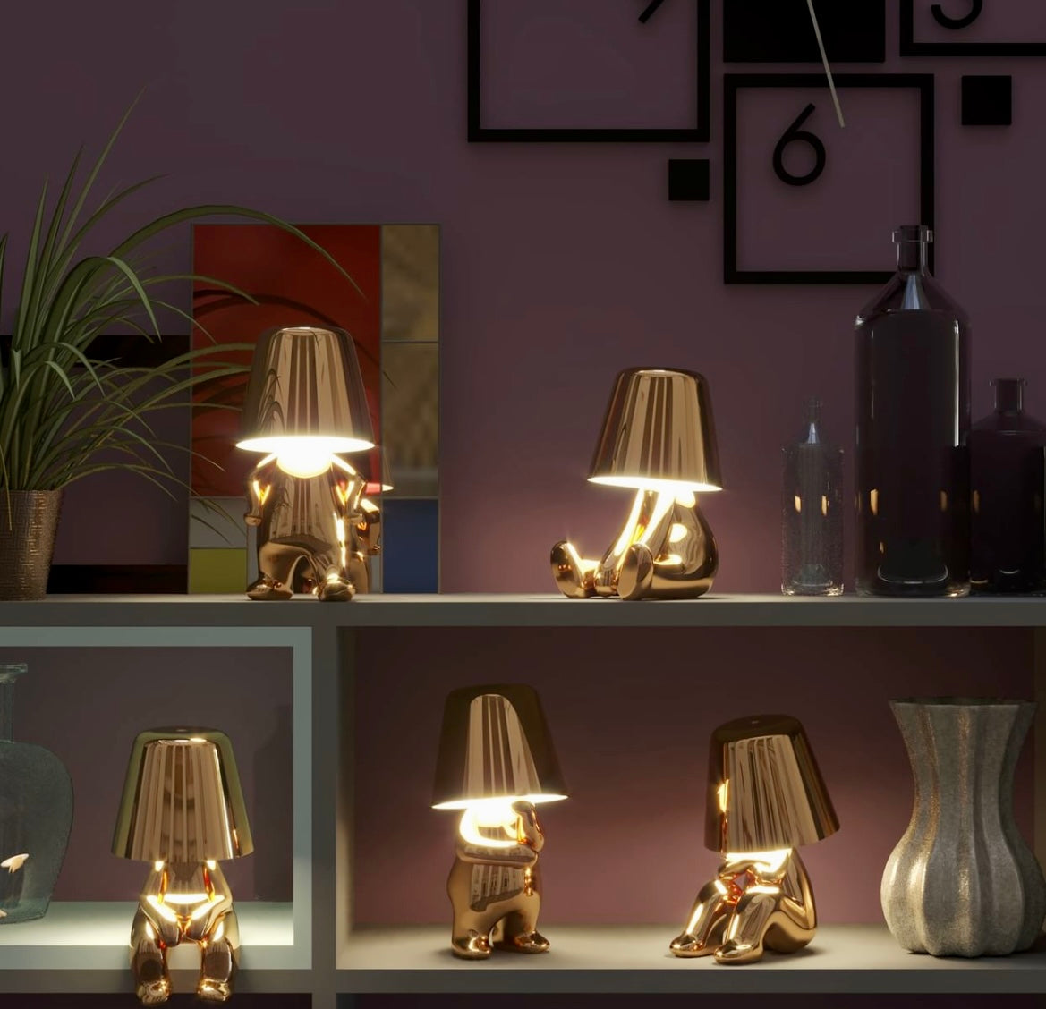 Each lamp features a unique character and pose, from the pensive thinker to the wide-eyed alarmist so whether you need a cozy reading light by your bedside, a playful addition to your living room decor, or a whimsical accent for your workspace, these cordless table lamps fit the bill perfectly.