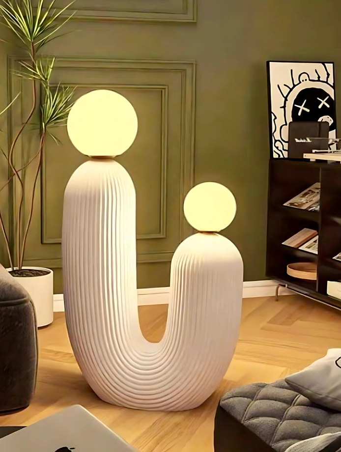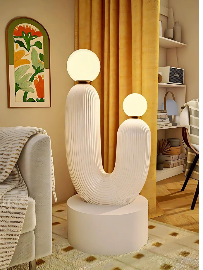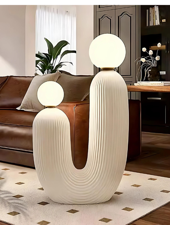 Add a modern statement to your space with the U-Shaped Floor Lamp with Double Spheres. Featuring a unique sculptural design and two glowing orbs, this lamp provides ambient lighting while serving as a chic décor piece. Perfect for contemporary and bohemian-inspired interiors.