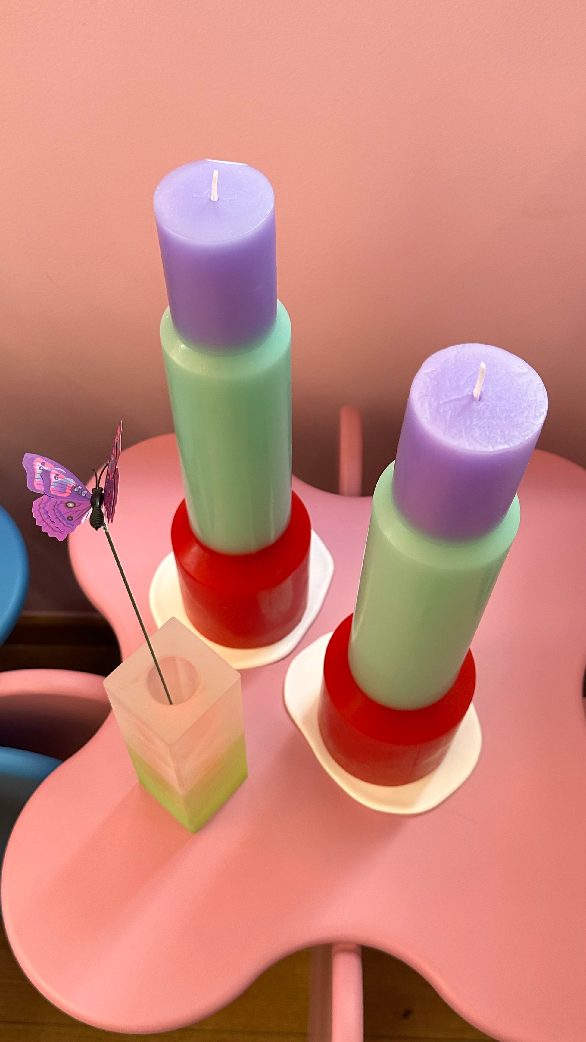 Introducing our stunning collection of Vibrant Rainbow Pillar Candle Mixes. These beautiful and bright-colored candles are a feast for the eyes with their rainbow-like colors and expressive shapes. Each candle is meticulously crafted to create a timeless piece of art that will add a burst of color and personality to any space.