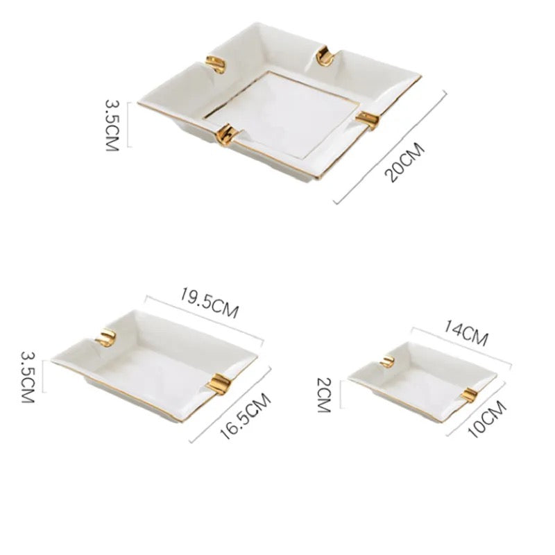 Introducing our elegant White Ceramic Cigar Ashtrays, the epitome of sophistication and luxury. Crafted with exquisite attention to detail, these ashtrays feature a pristine white ceramic base adorned with a refined gold lining, creating a stunning visual contrast. Available in three sizes, they cater to your specific needs and preferences. Elevate your smoking experience with our White Ceramic Cigar Ashtrays and indulge in the perfect combination of elegance and functionality