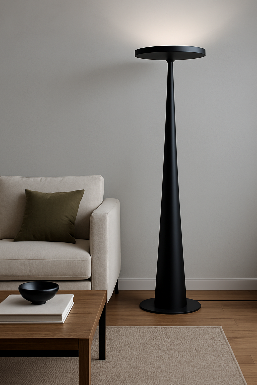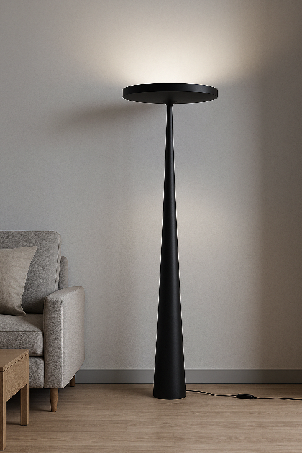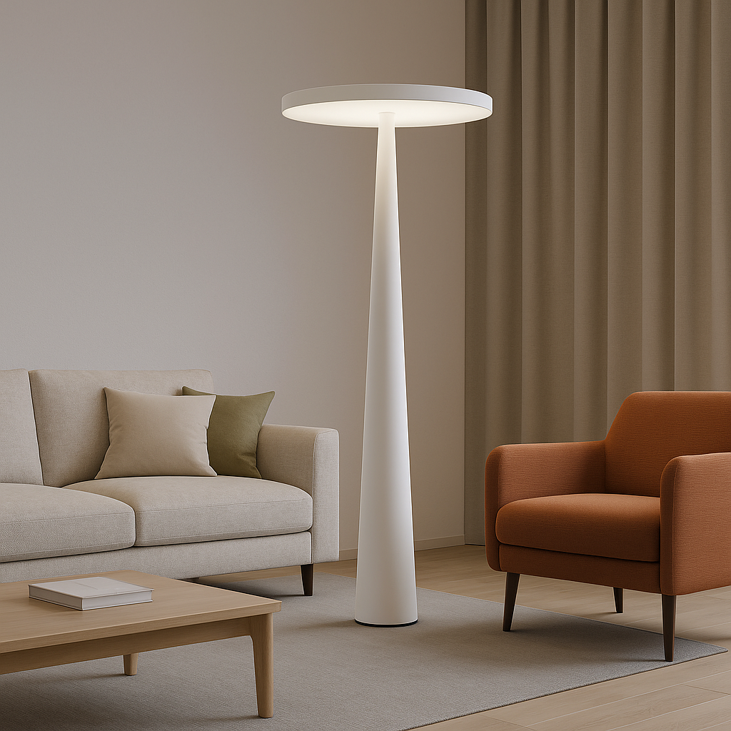 With its sculptural silhouette and striking cone design, the Zenith Floor Lamp is a modern statement piece that casts a soft, ambient uplight. Perfect for minimalist interiors, it blends form and function effortlessly. Available in matte black and clean white finishes to suit any space.