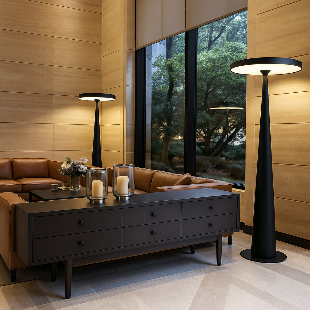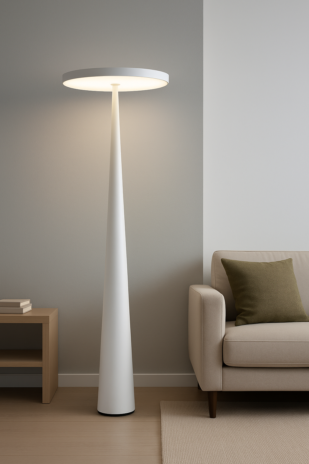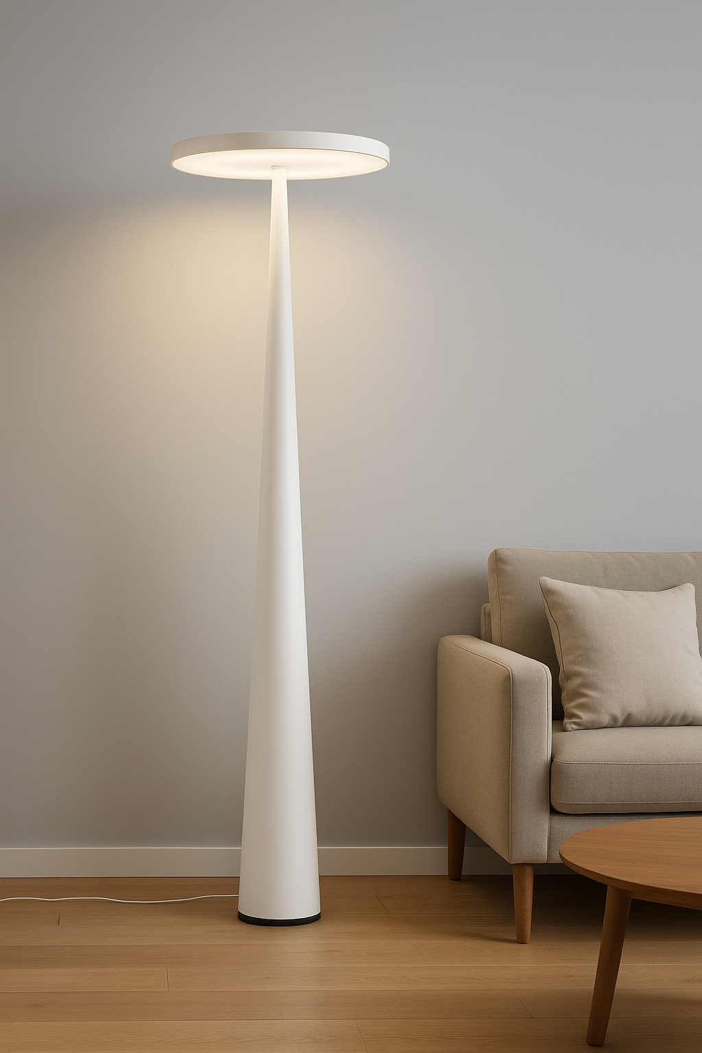 With its sculptural silhouette and striking cone design, the Zenith Floor Lamp is a modern statement piece that casts a soft, ambient uplight. Perfect for minimalist interiors, it blends form and function effortlessly. Available in matte black and clean white finishes to suit any space.